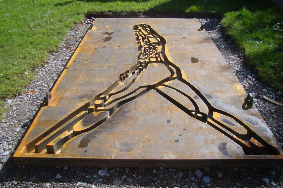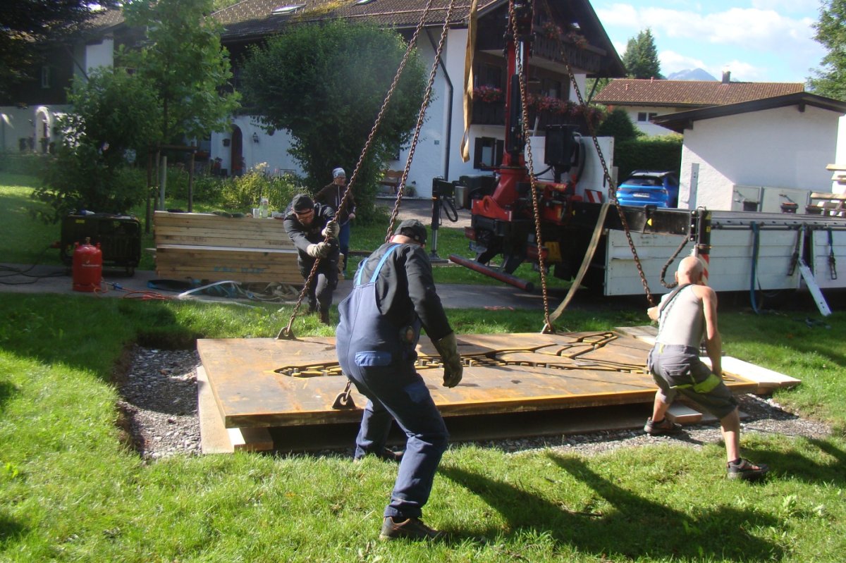 - Der Aufbau der Figur "Der Schreitende" mit einem Dank an die Präzisionsarbeit der Mitarbeiter von GROMETEC und Schmidl & Sohn aus der Region Chemnitz