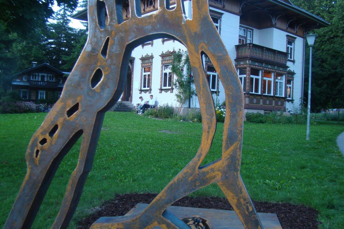 Im Beisein des Künstlers wurde sie am Freitag 18.07. anlässlich der Eröffnung der neuen Sommerausstellung von Stifter Dr. Thomas Weckerle an die Gemeinde Oberstdorf und die „Initiative Villa Jauss e.V.“ übergeben. Bürgermeister King zeigte sich hoch erfreut über diese markante Figur eines „aufrechten Ganges“. Der ehemalige DDR Künstler aus Chemnitz brachte darin auch die Genesung nach einem schweren Skiunfall zum Ausdruck.