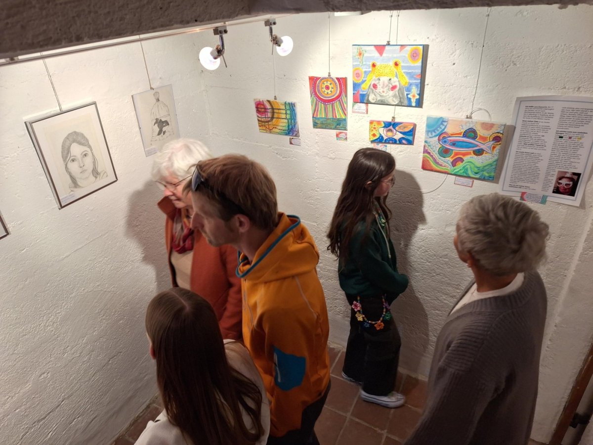 Es stellen aus: Anna Fäßler, Sophie Fäßler, Hanna Kogel, Amilia Lampe, Kiara Oberst, Lanz Ryguschik, Anna Wimmer, Marie Wimmer, Emely Wüstner und Christina Elsässer (digitale Kunst)
